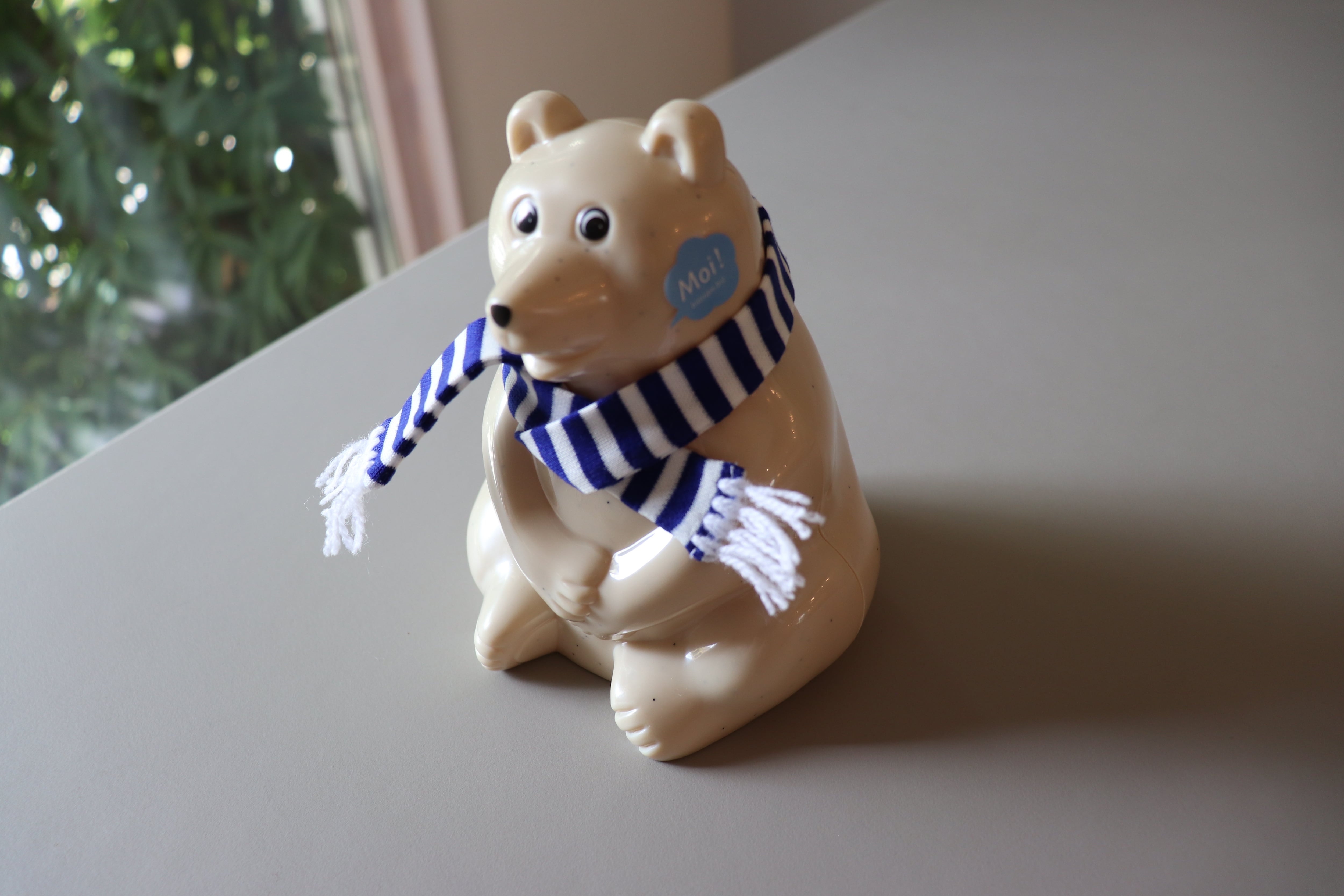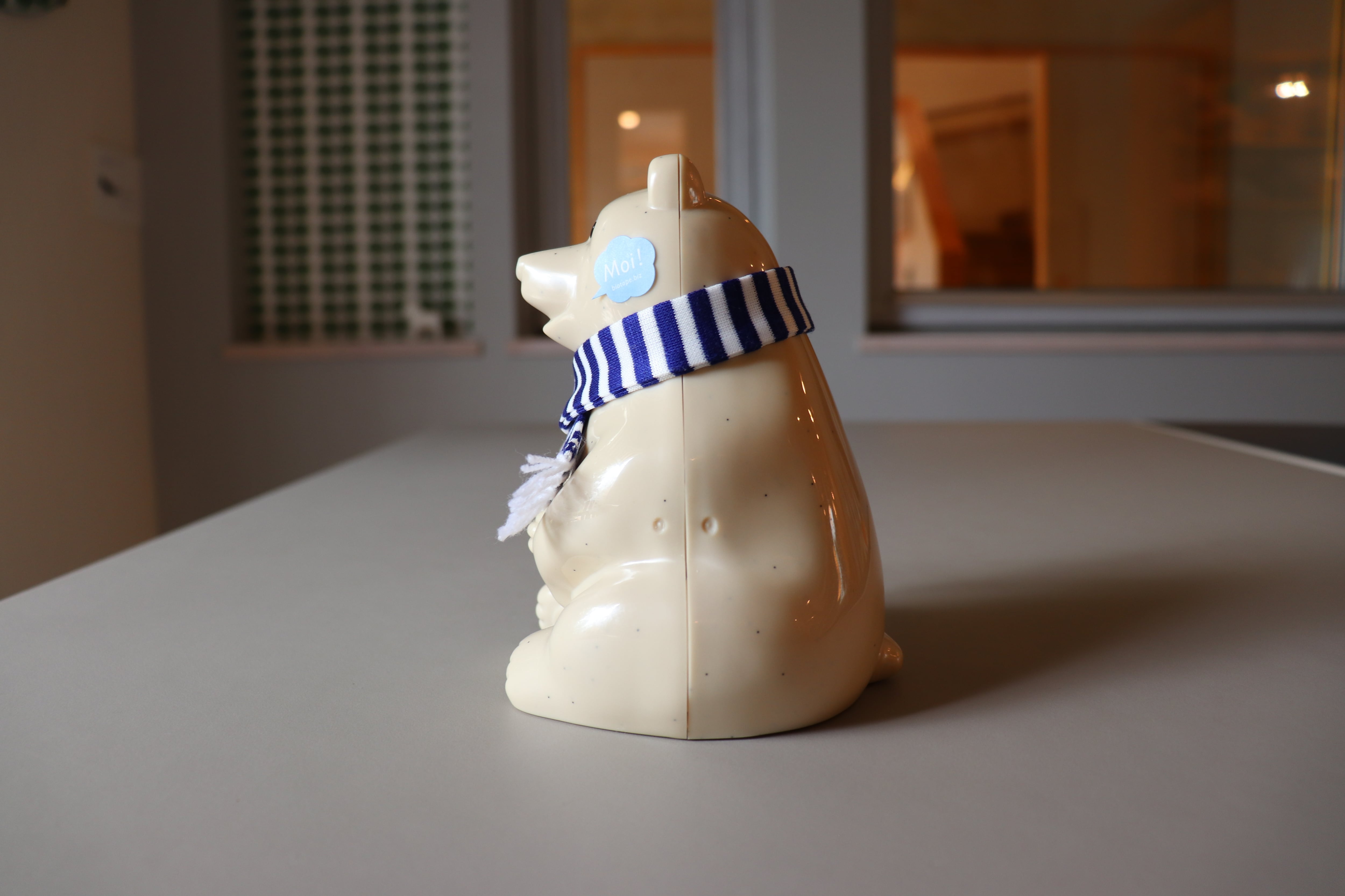 2025年限定カラーマフラー付きシロクマ貯金箱。