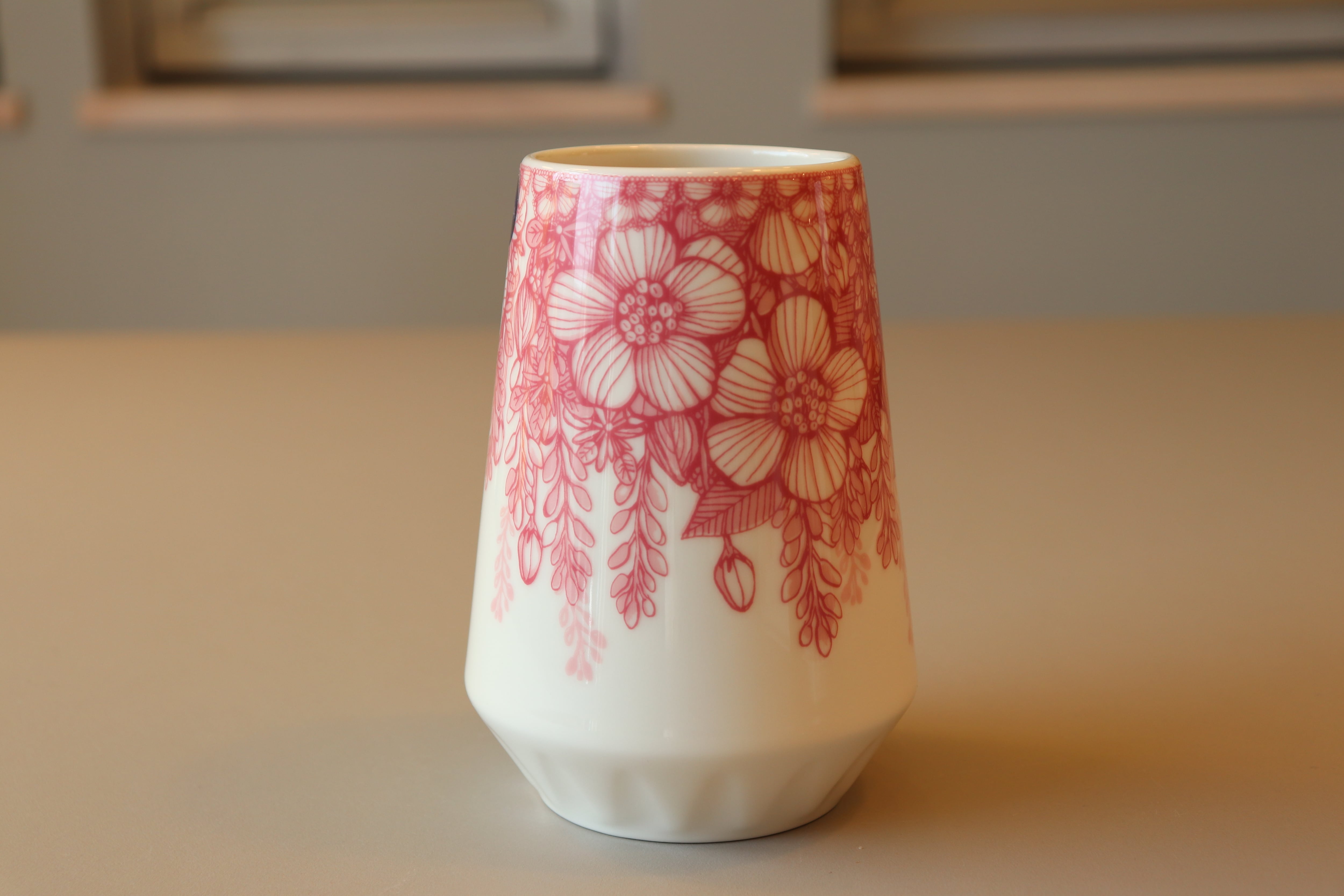 野薔薇を中心とした絵柄が、ヴィンテージ感漂う花器になっています。