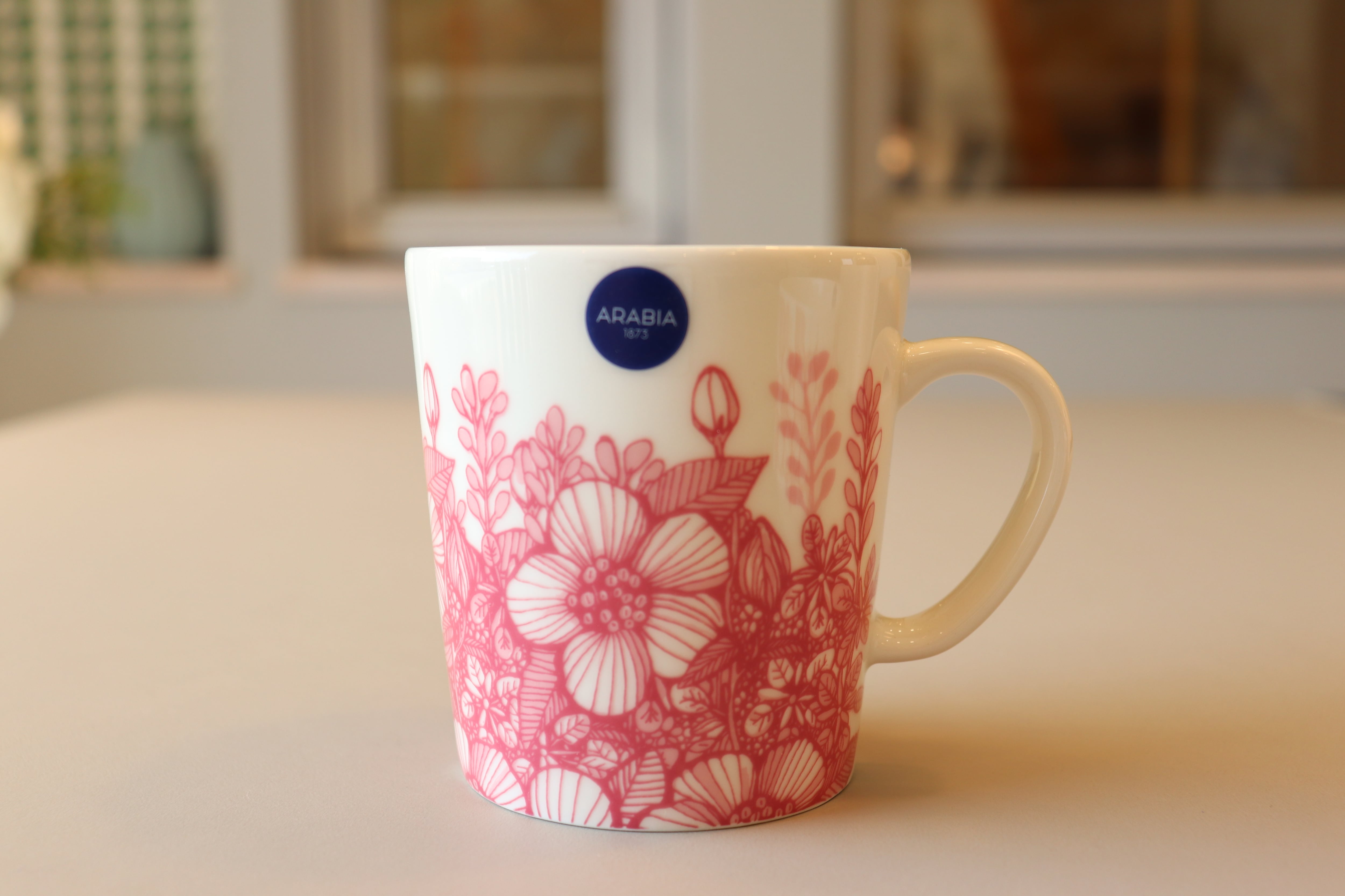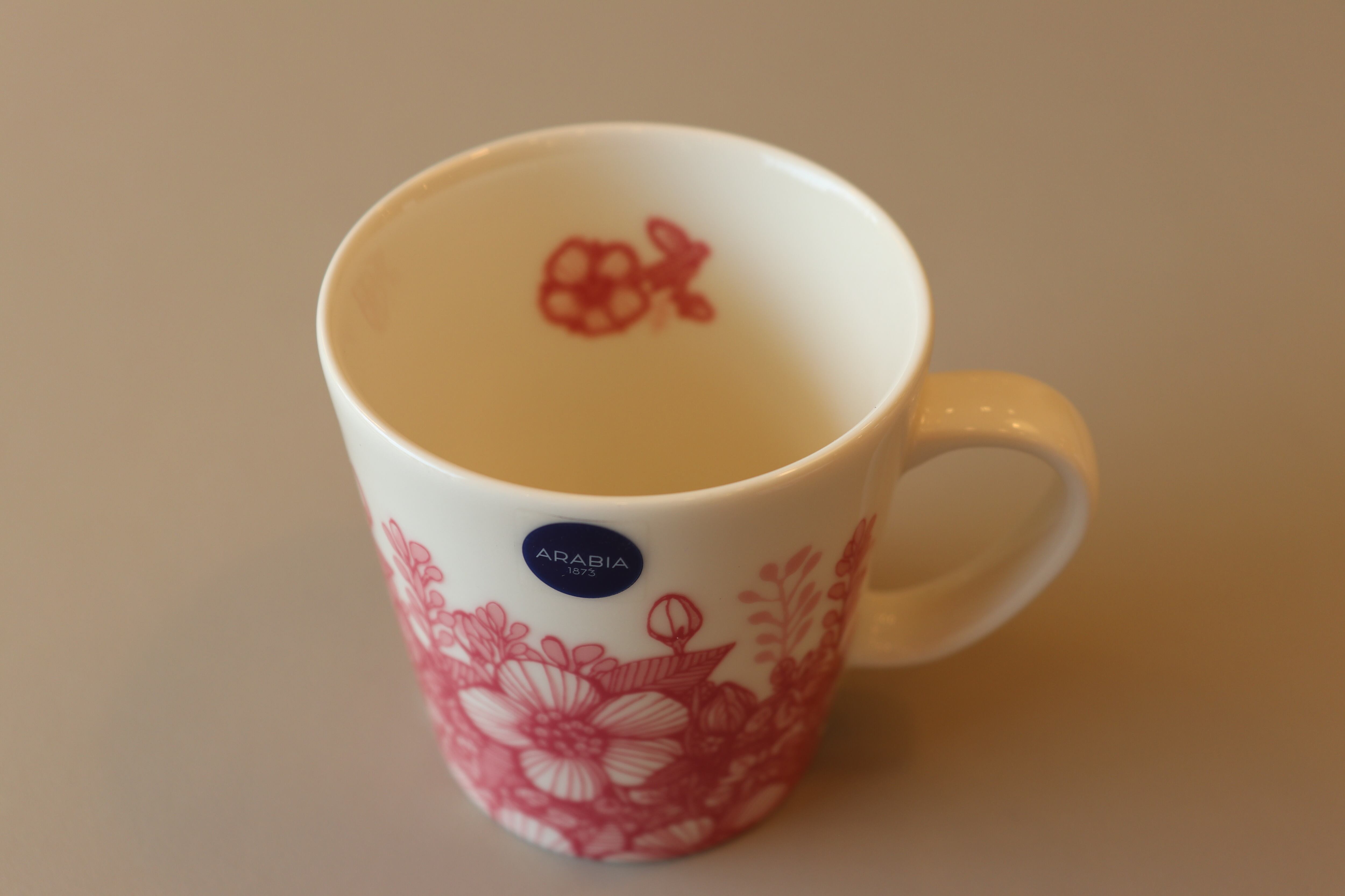 野薔薇をベースにした優しいピンクの花々は1920年代のアラビアビンテージの雰囲気を漂わせています。内側にも模様が描かれていて、思わず可愛い❣と手に取りたくなるカップです。
