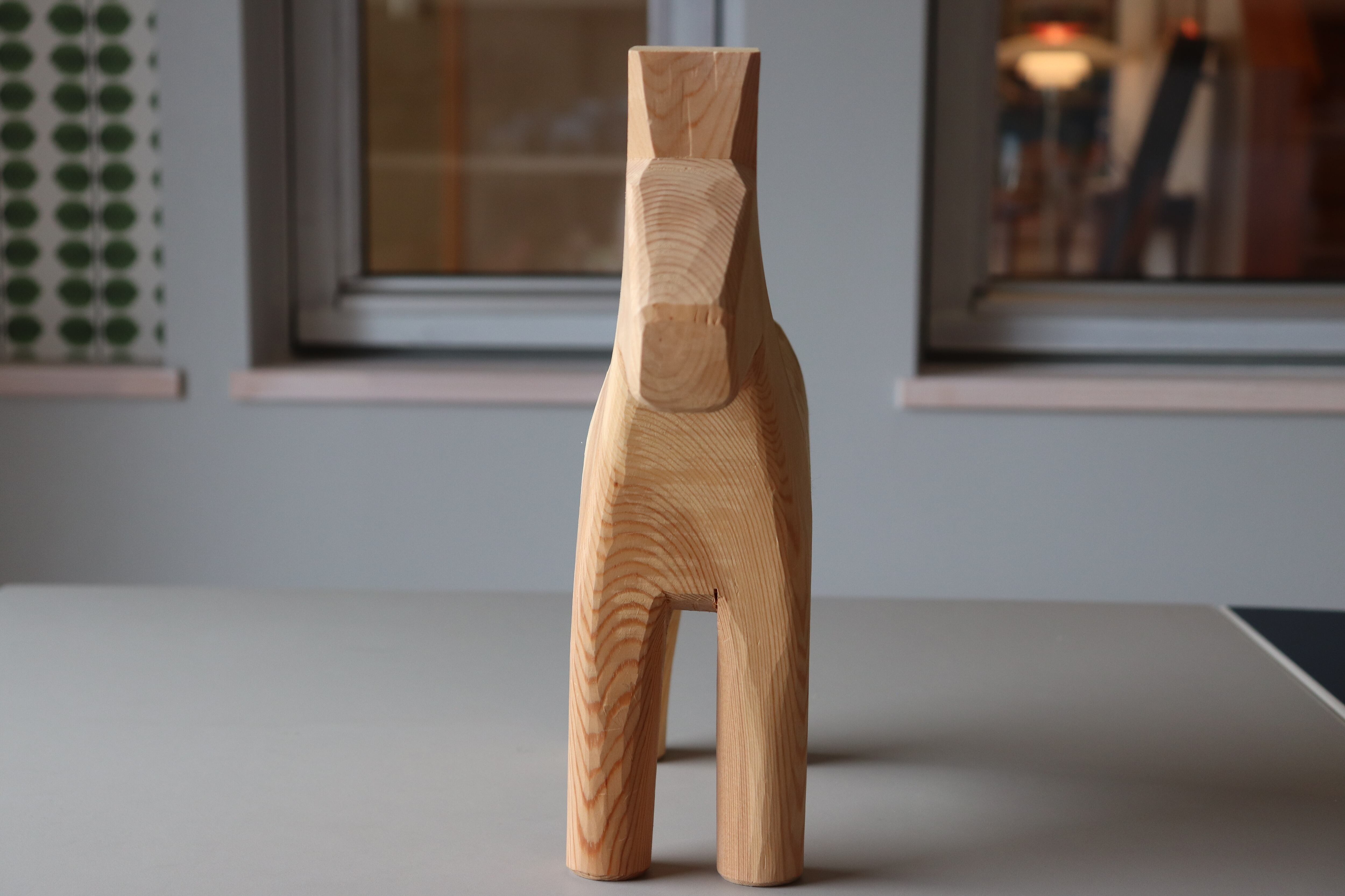 スウェーデンの長い冬の間、暖を取りながら余った木材を使用して、子供の遊び道具用に馬を彫ったことが始まりで、起源は約400年前。ニューヨークで開かれた国際見本市で紹介されてから世界的にも有名になりました。スウェーデンでは馬は幸せの象徴であり、ダーラヘストは『幸せを呼ぶ馬』として多くのスウェーデン人に愛されています。