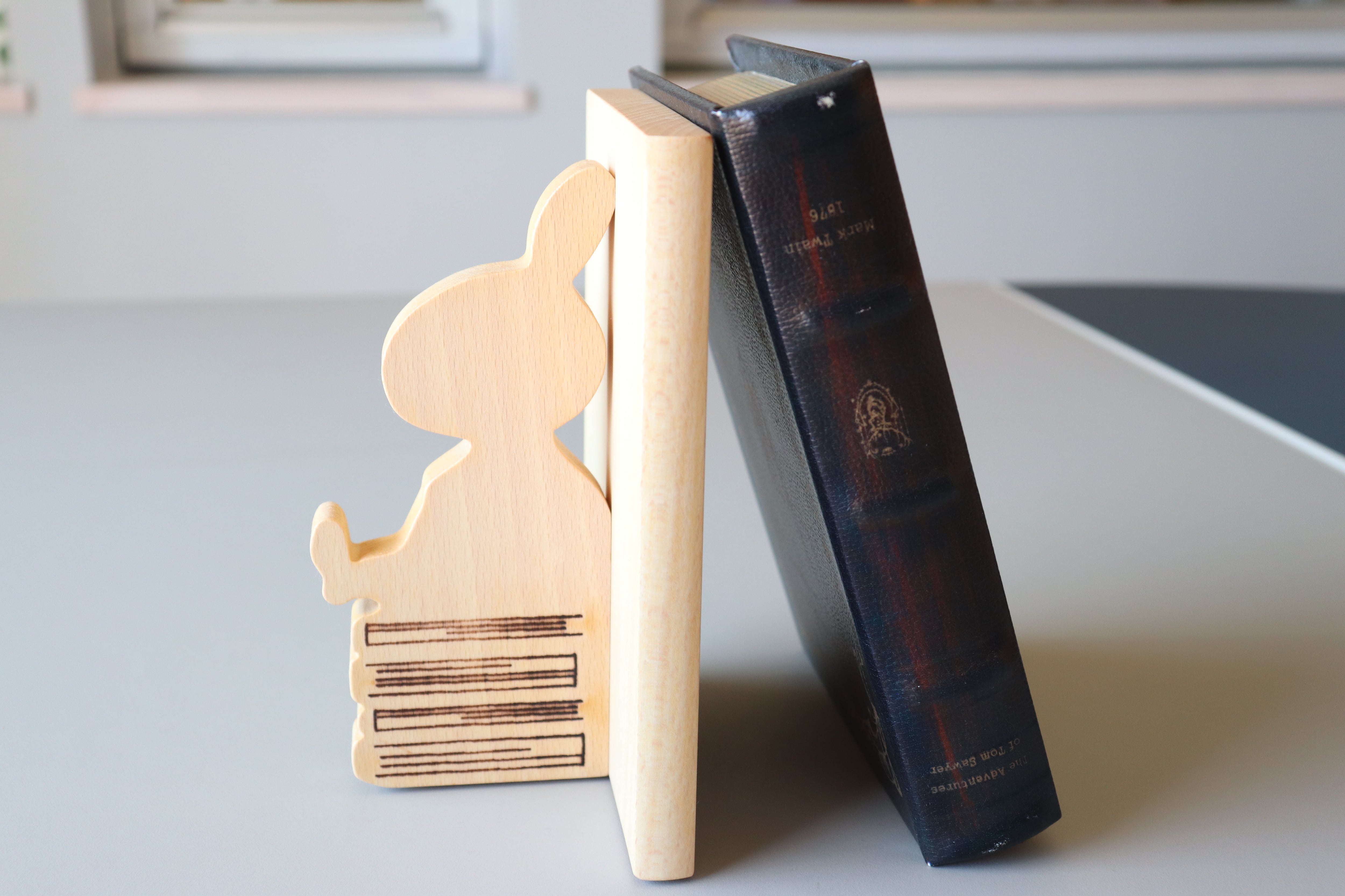 職人たちが丁寧に仕上げたブックスタンドは、国産無垢材を使用してムーミンたちのシルエットを表現しています。