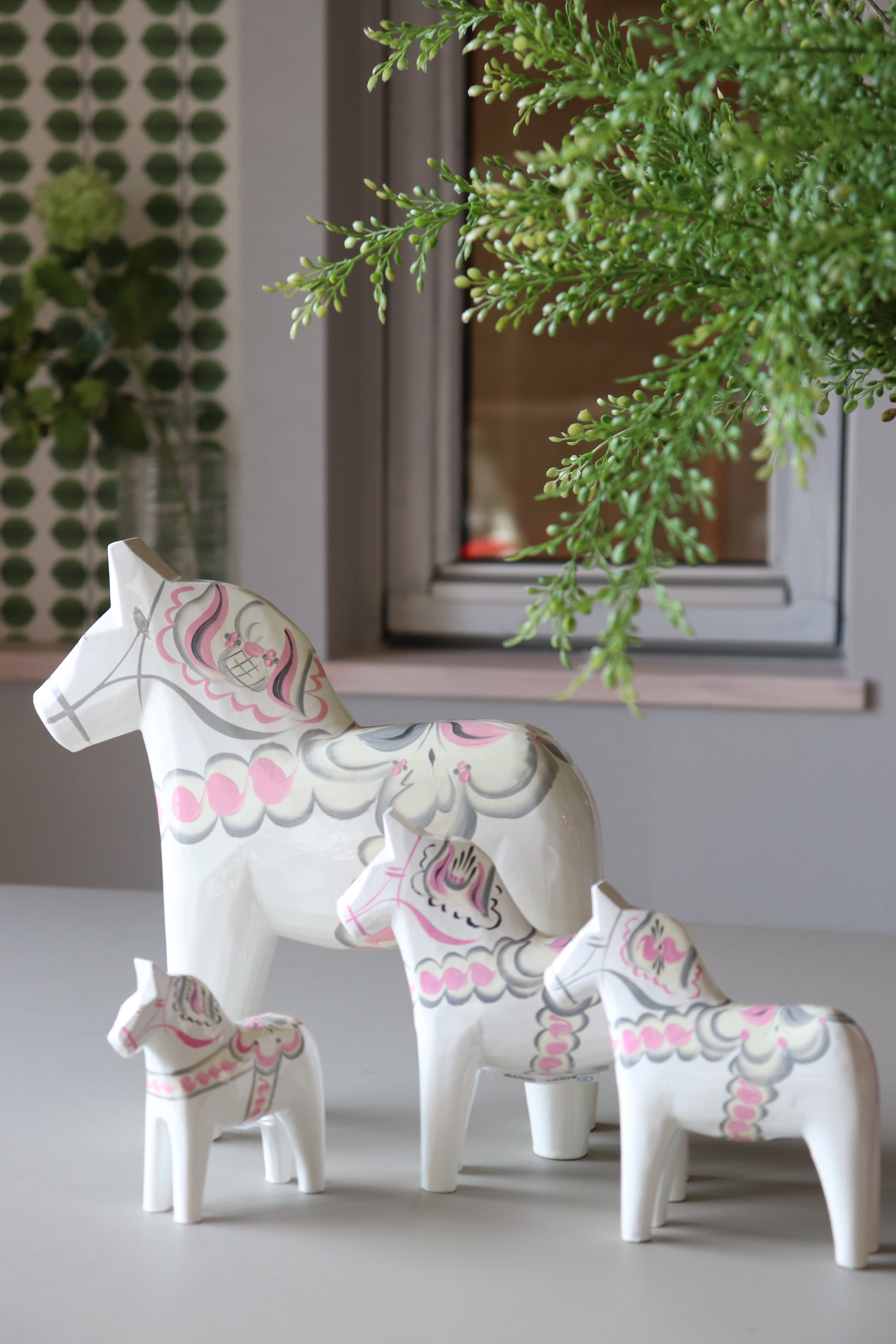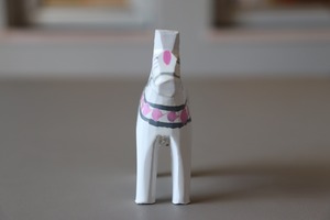 スウェーデンの長い冬の間、暖を取りながら余った木材を使用して、子供の遊び道具用に馬を彫ったことが始まりで、起源は約400年前。ニューヨークで開かれた国際見本市で紹介されてから世界的にも有名になりました。スウェーデンでは馬は幸せの象徴であり、ダーラヘストは『幸せを呼ぶ馬』として多くのスウェーデン人に愛されています。