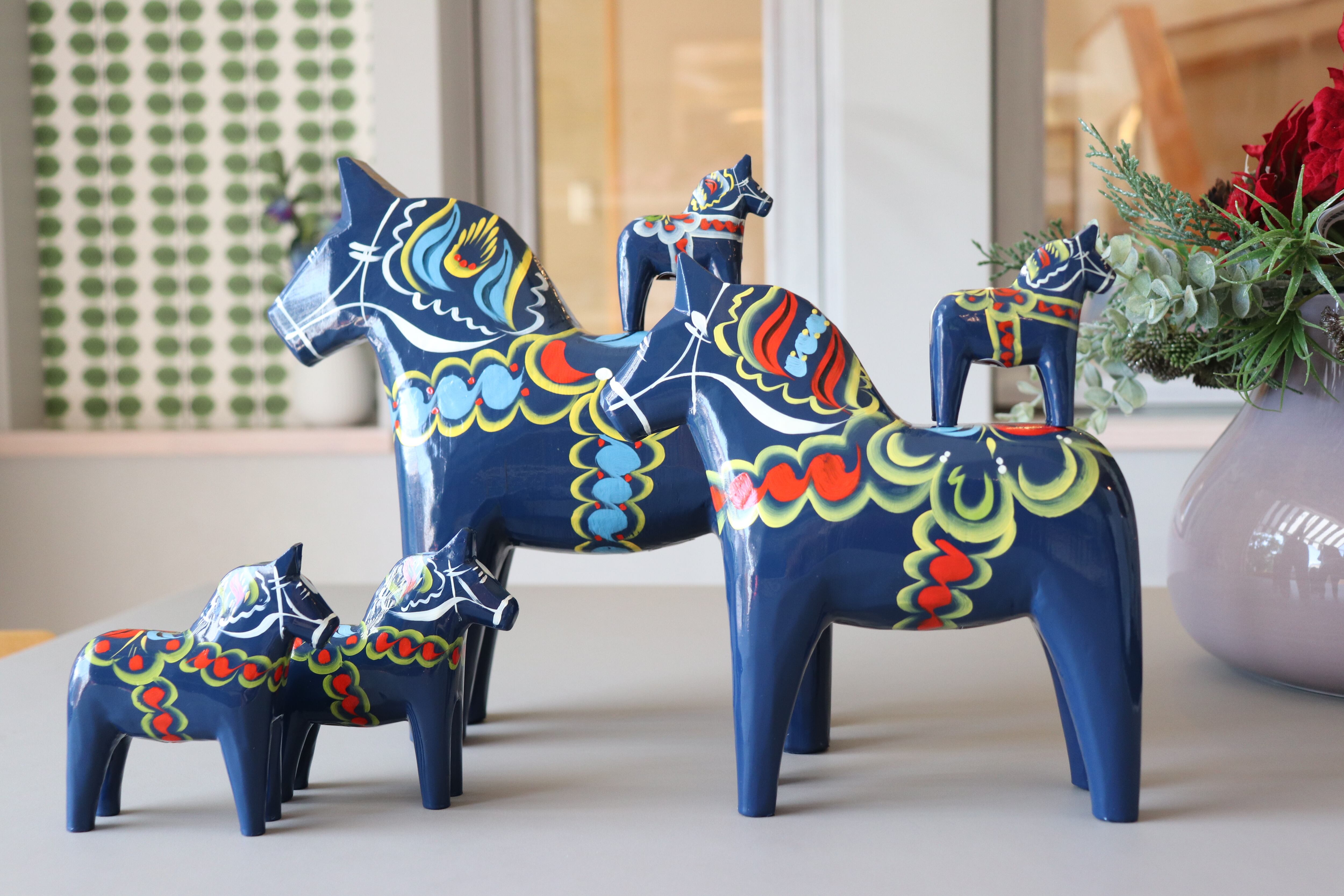 スウェーデンの長い冬の間、暖を取りながら余った木材を使用して、子供の遊び道具用に馬を彫ったことが始まりで、起源は約400年前。ニューヨークで開かれた国際見本市で紹介されてから世界的にも有名になりました。スウェーデンでは馬は幸せの象徴であり、ダーラヘストは『幸せを呼ぶ馬』として多くのスウェーデン人に愛されています。